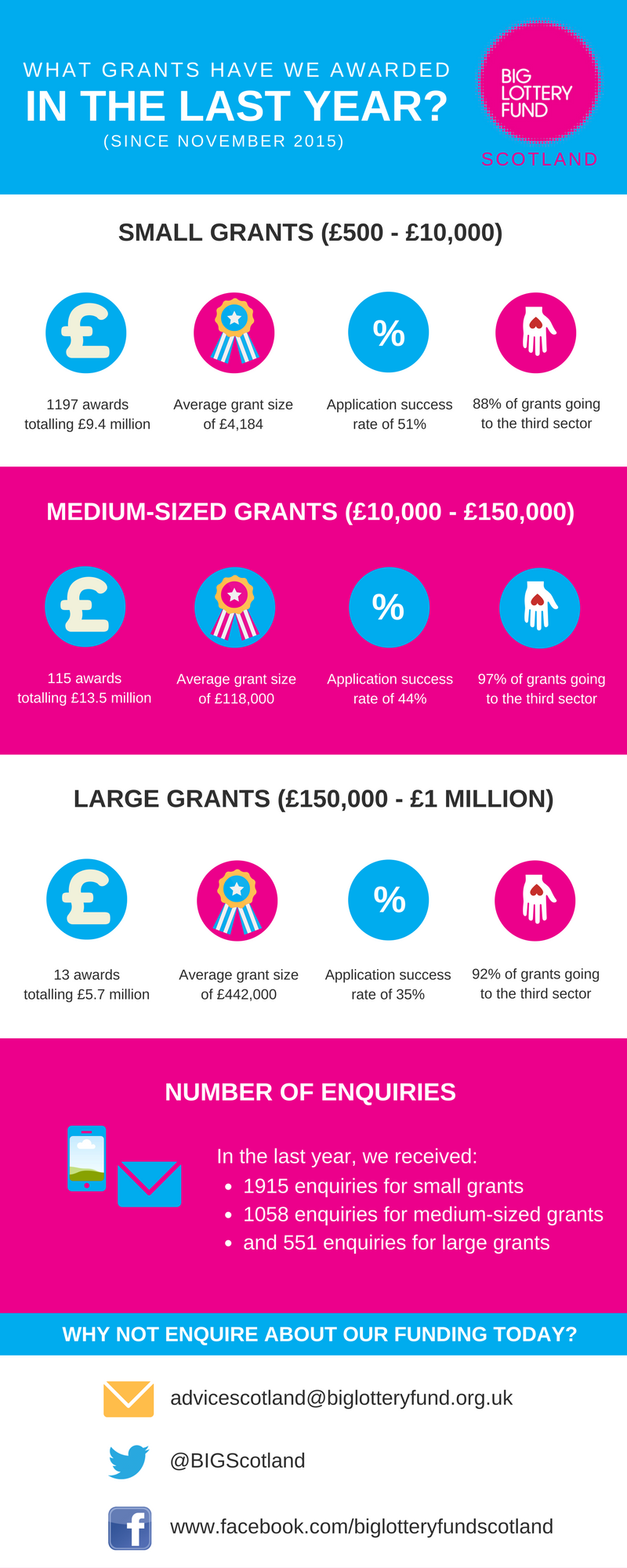 Check out our infographic for an overview of our small, medium and large grants funding in the last year.