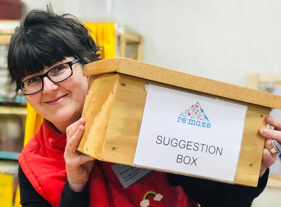 Here at Remake we like to keep as much as we can out of landfill and in the circular economy, including all the different plastic items that we are given. We regularly create ‘Loose Parts’ suitcases full of different plastic types and items for nurseries or pre-school groups. We bundle all sorts of plastic items up and sell for arts and crafts projects. With heavier, more durable plastics we use them for display, storage and promoting and selling our products. We have a kitchen area full of reusable cups and crockery and encourage our volunteers to use these rather than disposable plastic-based items.