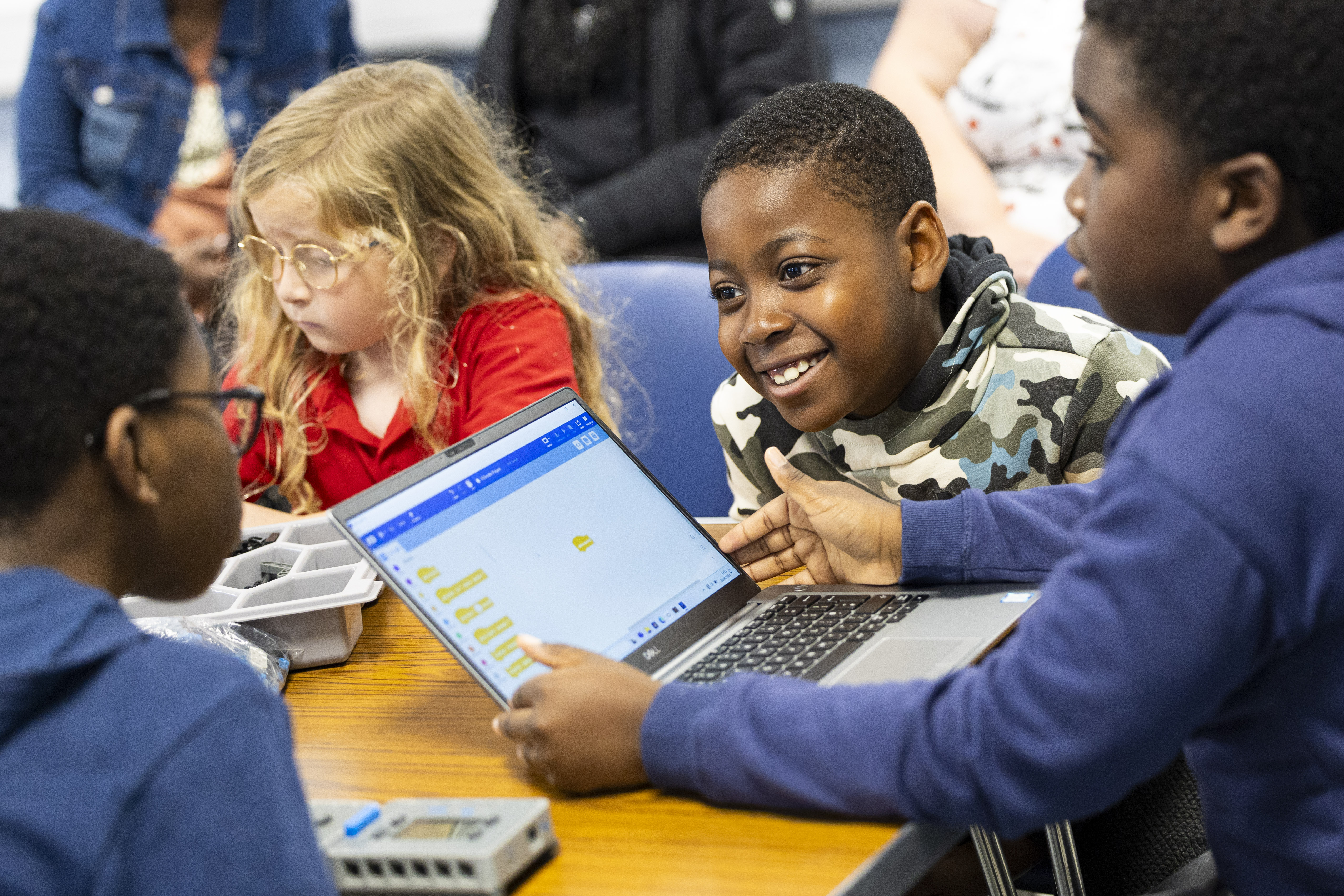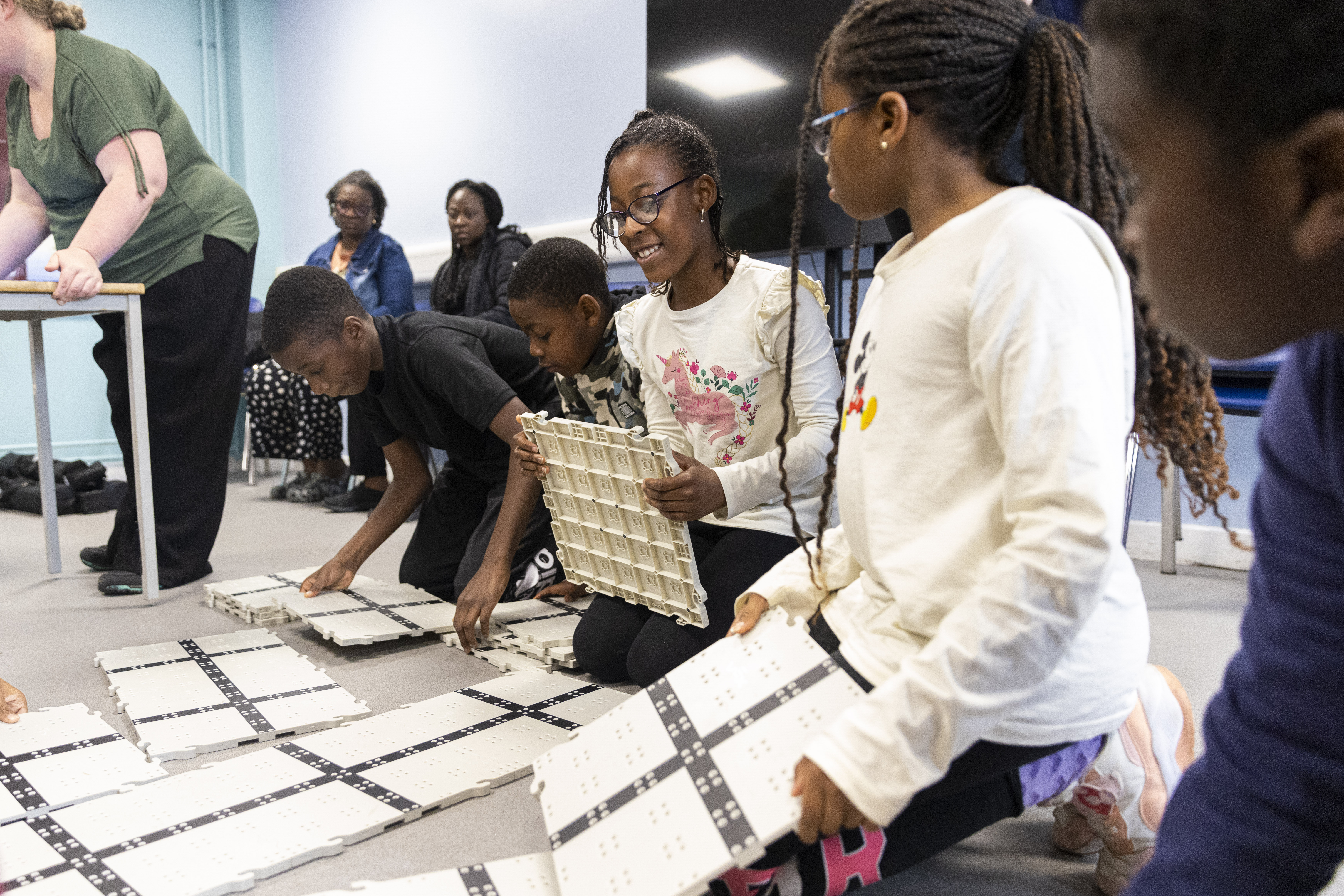 The young people split into two teams with energy bouncing off the walls as they put their minds to work assembling their own robots.