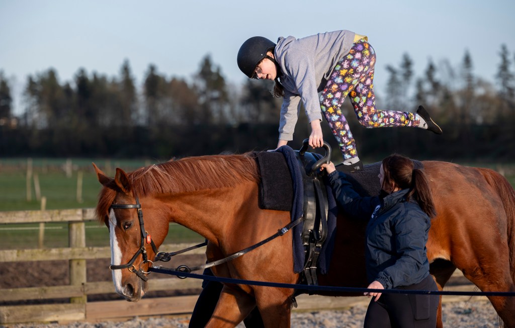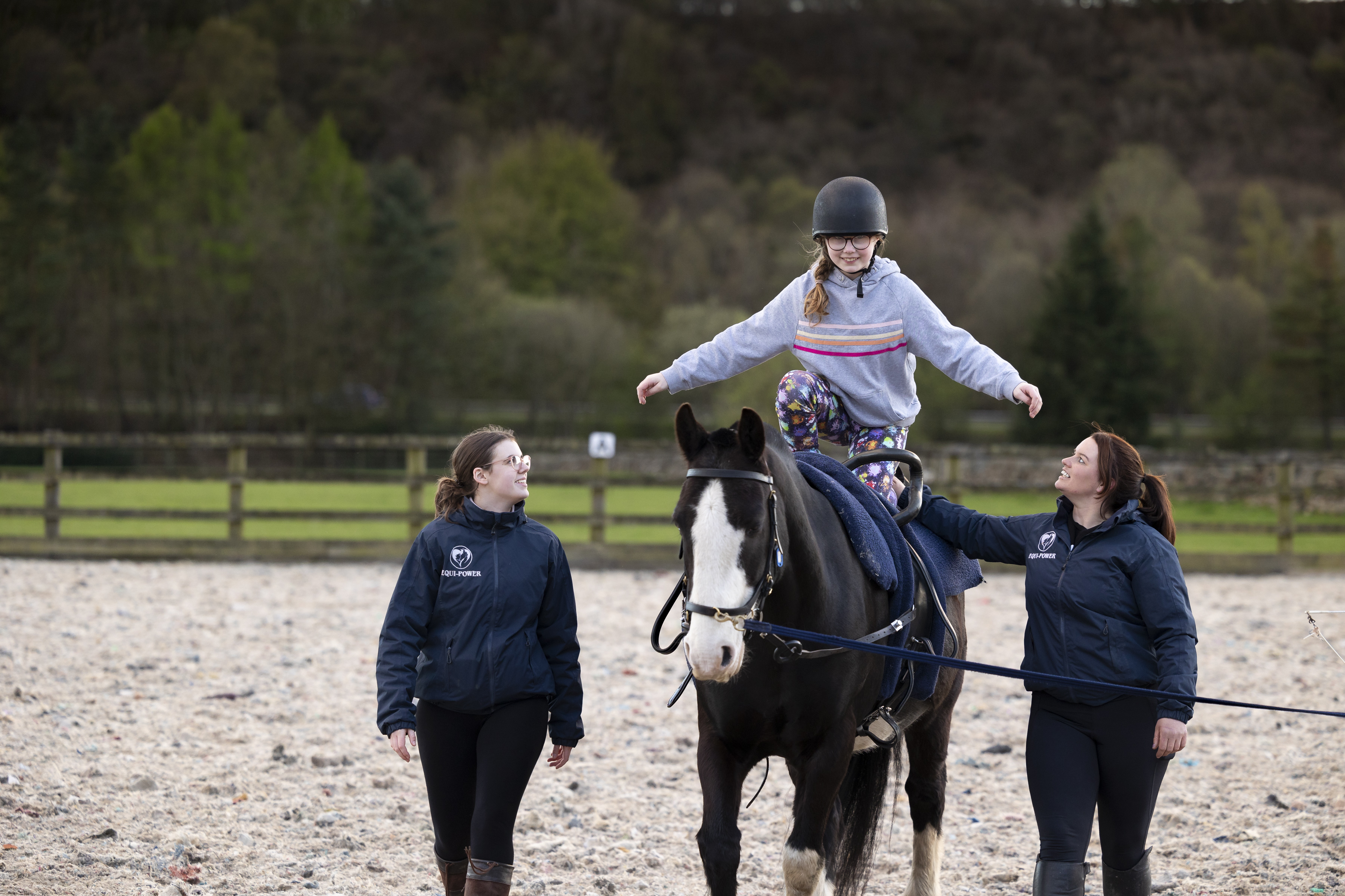 As the sun sinks low on a chilly April day, at a livery yard in Plean, the noise of laughter and the thud of hooves on sand can be heard, as a group of young people and their coaches make their way into the paddock for their lesson. But this is no ordinary riding lesson. These young people are learning equestrian vaulting, a graceful mixture of gymnastics and dance, all done on horseback.